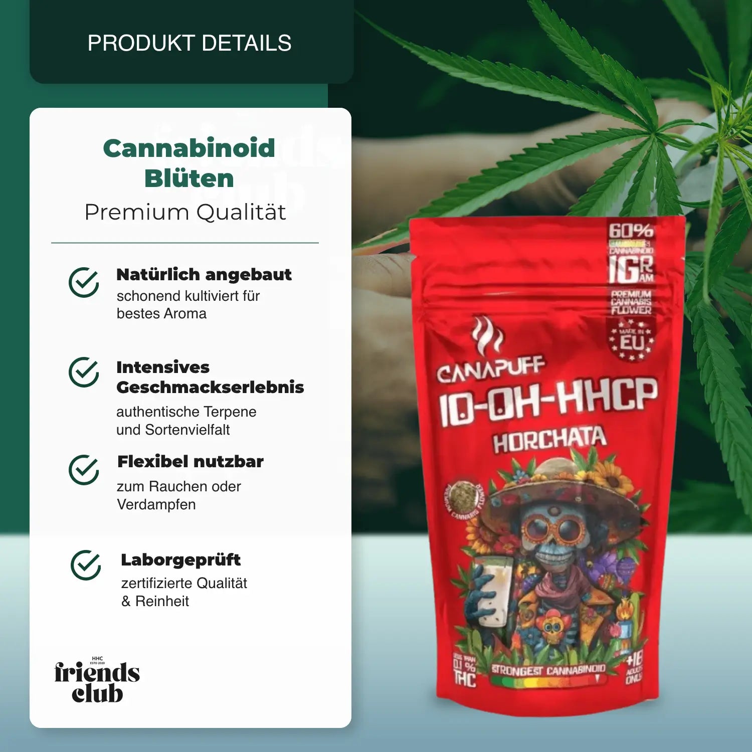 Stell dir eine süße, fruchtige und erdige Mischung vor, die an das traditionelle Getränk Horchata erinnert. Diese cremige Dessertnote bietet zusätzlich einen feinen Hauch von Terpinolen. Das Aroma von süßer Wassermelone vermischt sich perfekt mit einem Hauch von süßer Zimtsahne und Banane, dank der Kombination aus Jet Fuel Gelato und Mochi Gelato. Neben dem süßen und cremigen Geschmack erwartet dich ein komplexes Geschmacksprofil mit fruchtigen und würzigen Noten. Jeder Schluck verspricht ein reichhaltiges und ausgewogenes Erlebnis. Die Dosis lebendes Horchata-Harz wird aus handverlesenem Ultra-Premium-Hanf gewonnen, der im Moment des maximalen aromatischen Ausdrucks geerntet wurde. Geringe Abweichungen von Ernte zu Ernte sind typisch für ein Naturprodukt.