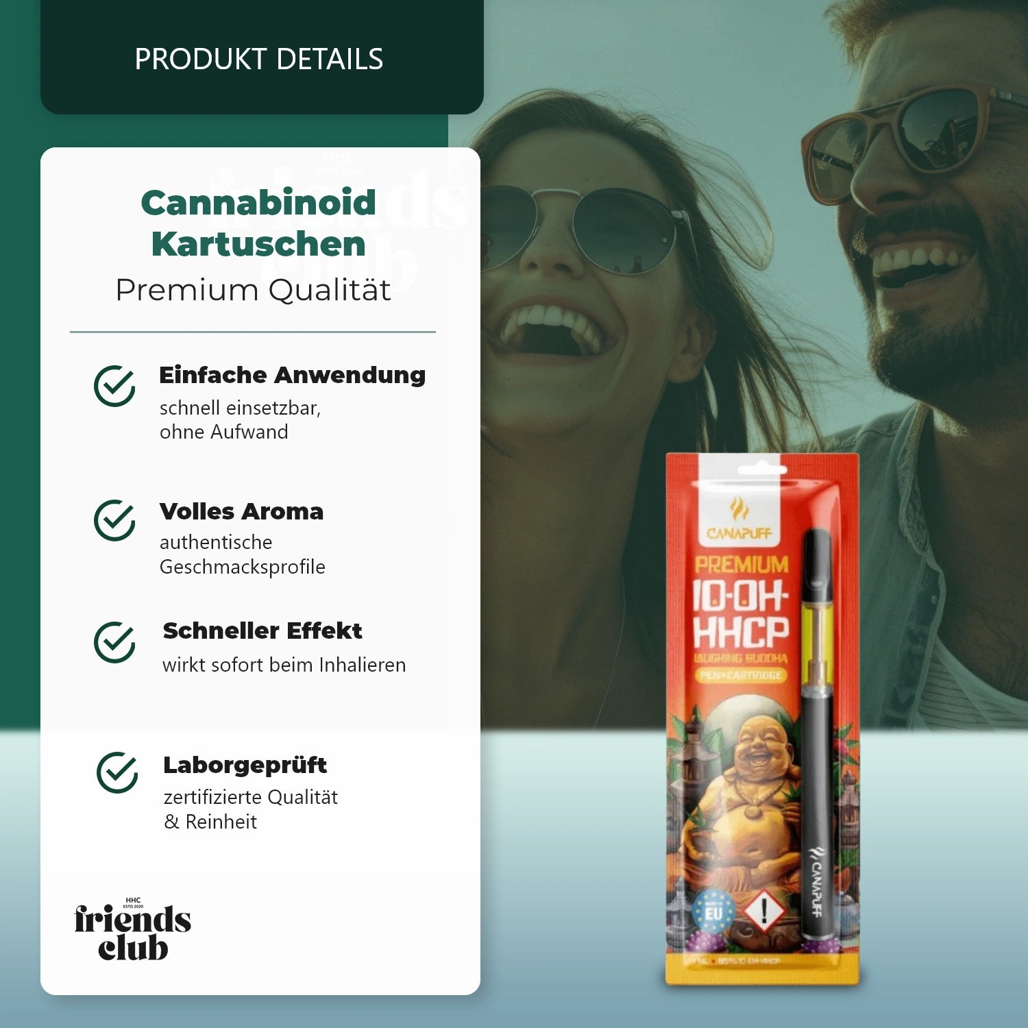 Mit dem 10-OH-P Pen + Cartridge Laughing Buddha 95% in 1ml erlebst du eine faszinierende Terpensorte, die mit einer einzigartigen Kombination aus schwarzen Lakritz- und Gewürzaromen überrascht. Diese treffen auf subtile Noten von Zeder und Diesel, was das Geschmackserlebnis intensiv und unverwechselbar macht. Laughing Buddha, ein Hybrid aus thailändischen und jamaikanischen Sorten, ist dafür bekannt, dir in jeder Situation Freude zu bringen – mit einem Lächeln im Gesicht und einer angenehmen, zimtigen Wärme auf der Zunge.