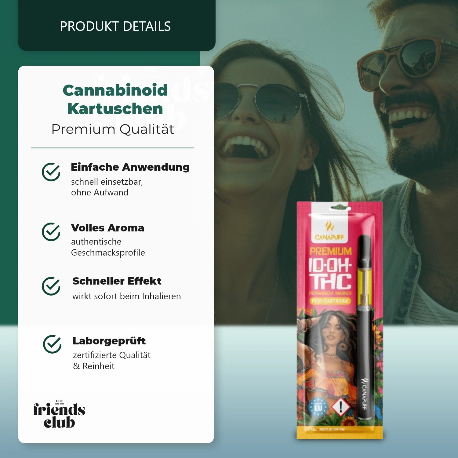 Beim Inhalieren entfalten sich die blumigen Noten zu einem reichhaltigen und ausgewogenen Erlebnis, das durch die Kombination aus süßen und floralen Nuancen besticht. Dieser 10-OH-THC Pen bietet Dir ein unverwechselbares Geschmacksprofil und sorgt für ein intensives sensorisches Erlebnis.
