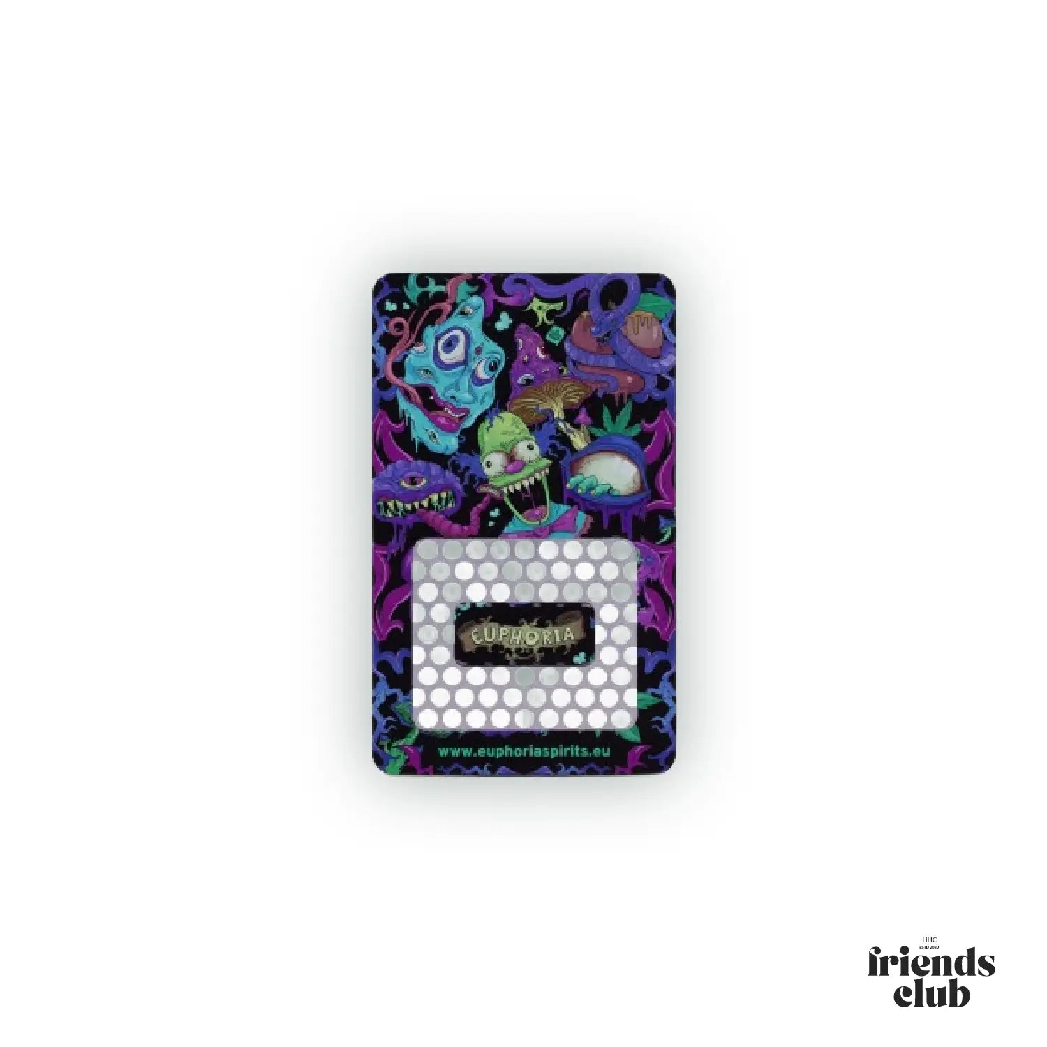 Das beidseitige Design macht den Grinder nicht nur visuell spannend – jedes Motiv steht für eine Seite der Kartenmühle –, sondern auch besonders benutzerfreundlich. Dank seiner flachen, robusten Bauweise passt er in jede Tasche oder Geldbörse und ist damit der ideale Begleiter für unterwegs.