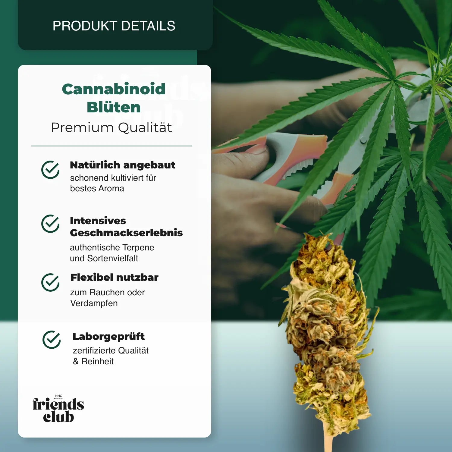 Du suchst nach einem starken PHC-Produkt? Dann ist die PHC Blüte V1 genau das Richtige für dich! Mit einem PHC-Gehalt von 25% bringt sie ordentlich Potenzial mit - bei einem THC-Gehalt von unter 0,2% bleibst du dabei im rechtlich sicheren Bereich.