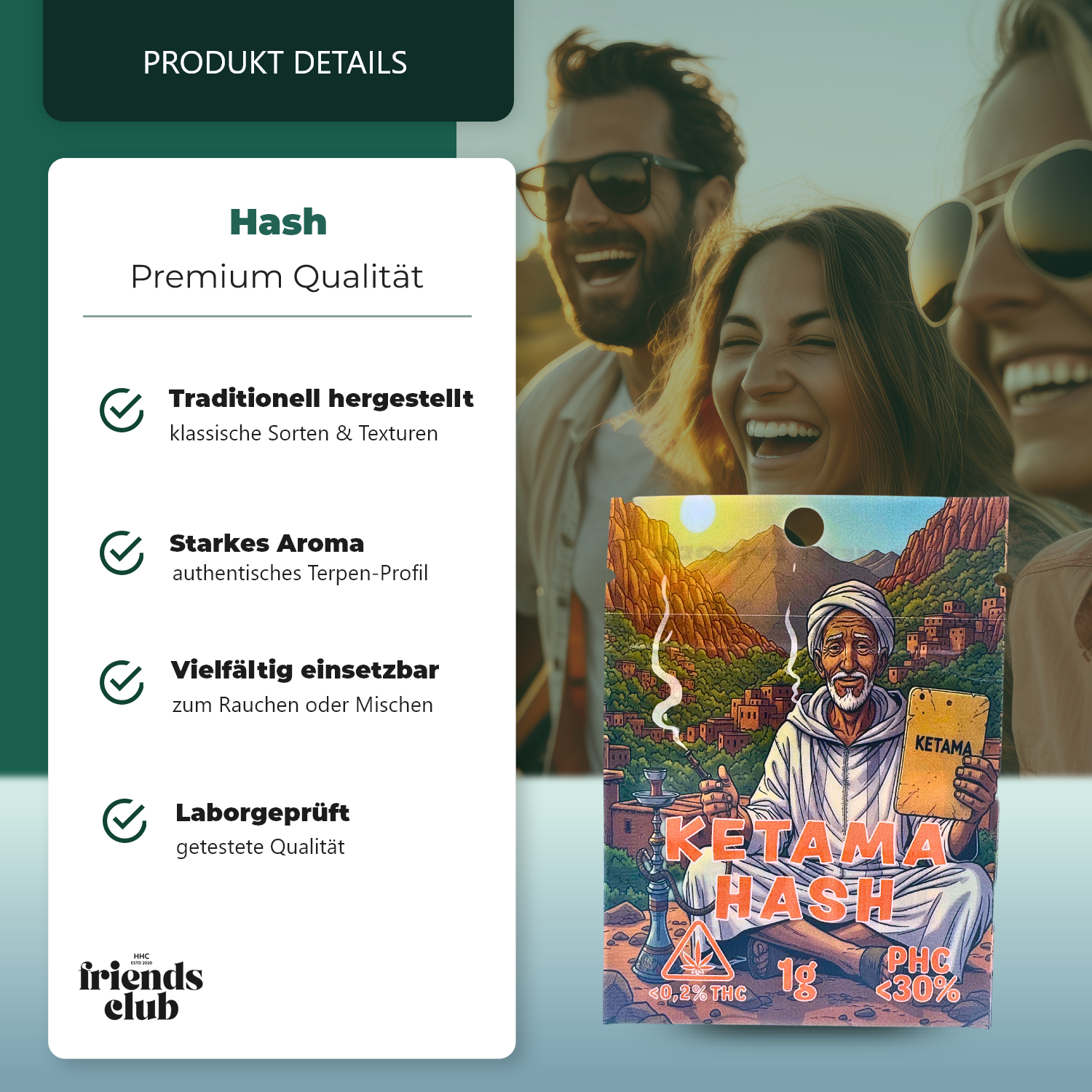 Entdecke die faszinierende Welt des PHC Hash im traditionellen Ketama-Stil. Dieses Sammlerprodukt kombiniert ein klassisches Aussehen mit einer modernen Rezeptur: Mehr als 22 % PHC, weniger als 0,1 % THC und über 1 % CBD – ein außergewöhnliches Profil für Kenner:innen und Liebhaber:innen besonderer Aromen.