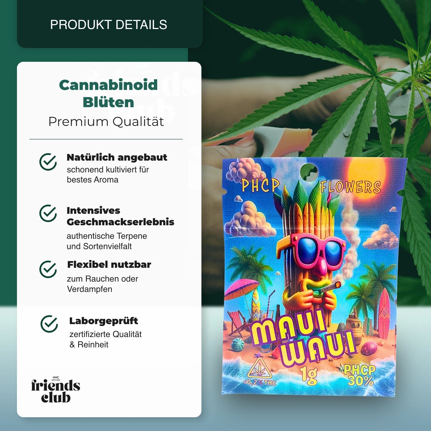 Hol dir den Aloha-Spirit direkt nach Hause mit den Maui Waui PHCP Flowers – einem hochwertigen Sammlerstück aus EU-Nutzhanf, veredelt mit bis zu 30 % PHCP. Tropischer Duft trifft auf intensives Aroma und macht diese Blüten zu einem echten Highlight in jeder Kollektion.